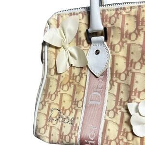 dior oblique monogram canvas pink tote bowling bag floral applique bow detail crystal logo parisian chic luxury designer handbag girly aesthetic coquette bag core princesscore 2000s handbag 00s mall goth kawaii preppy luxe designer archive runway accessory statement piece collectible fashion