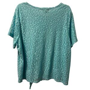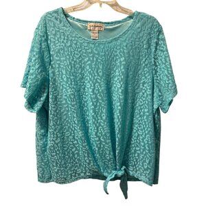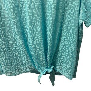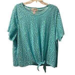 C.D. Daniels 2X Turquoise Short Sleeve Tie-Front Top blouse