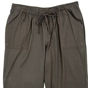 Army green lightweight comfortable pull on pants. Elastic waist with tie. Front pockets. Cotton/polyester. Like new.
