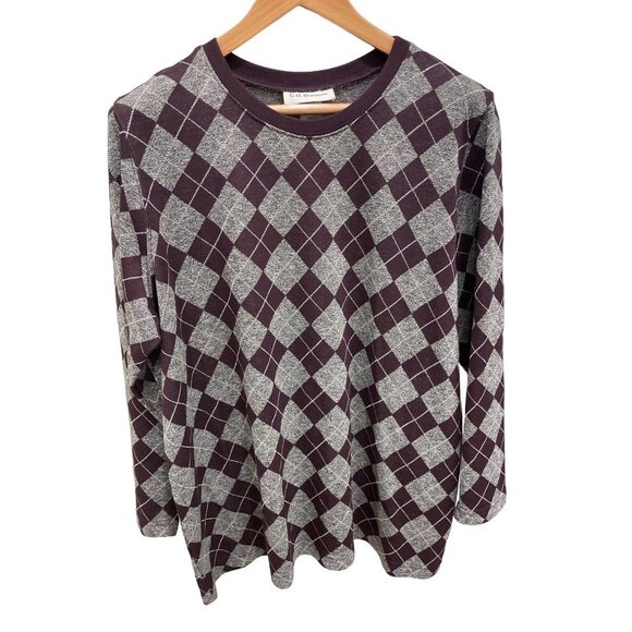 C.D. Daniels Maroon Argyle Patterned Crew Neck Pullover Sweater Sz 1X