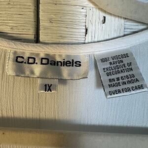 C.D. Daniels women’s tunic blouse white gauze blue embroidery bohemian plus size