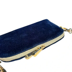‘CD’ Logo Navy Velvet Beauty Pouch+Unbranded Chain Crossbody