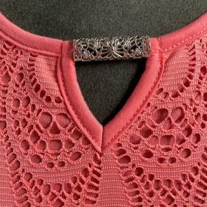 •Scoop Neck with Keyhole with Metal Broach Like Embellishment