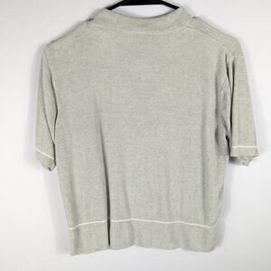 CD Petites M Linen Rayon Knit Top Collar Embroidered Floral Cottagecore Shirt