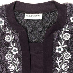 CD Petites Womens Large Maroon elegant floral Embroidered Long Sleeve Sweater