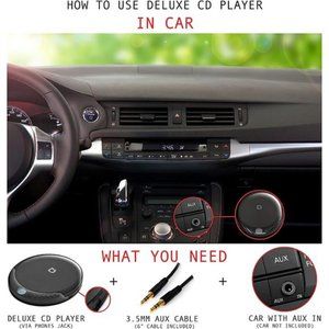 🧿Connect to Your Speaker or Car - Using the INCLUDED 3.5mm Aux in cable you can easily connect your Deluxe CD Players for home to your favourite speaker, or car! Just ensure your device or Car has a 3.5mm AUX in or LINE in connection