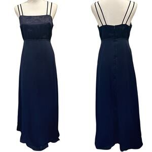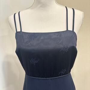 CDC Evening Vintage 1990s Navy Blue Embroidered Maxi Gown Whimsigoth Witchy Y2K