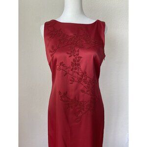 CDC Petites SZ 8 Satin Formal Dress Red Beaded Floral Prom Dress 90s Y2K. Pre-owned, good condition.