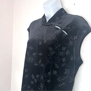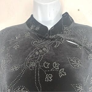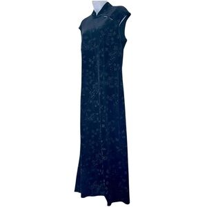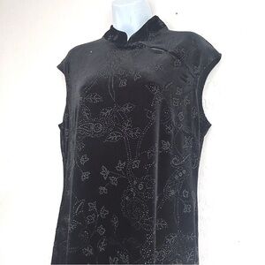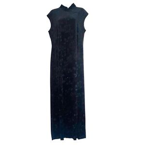 CDC Vtg 90s Y2K Black Velvet Sparkle Beaded Maxi Dress Mandarin Collar