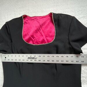 CDC Womens Black Short Sleeve Dress with Rhinestone Trim & Pink Lining Size 14