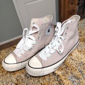 Fun Converse sneakers with red heart graphics. Cream canvas adds a classic touch.