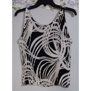 Sleeveless. Accordion style. Black and white coloring. Polyester material. Korea. Chest 32" unstretched. Length 20".