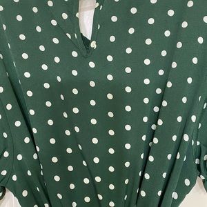 Short Sleeve A-Line Green Polka Dot Dress