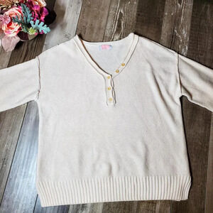 C+D+M Solid Cream Women's V-Neck Drop Shoulder Knit Sweater Size XL