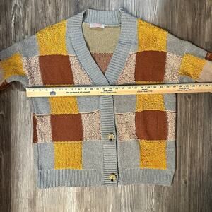 C+D+M Women's M Multicolor Patchwork ColorBlock Button-Up Cardigan Sweater