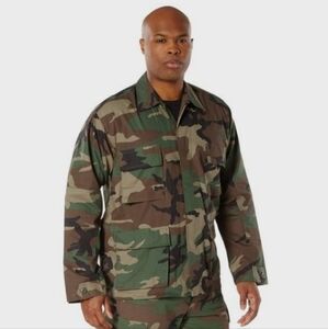 BDU Ripstop Fatigue Jacket Camo 2 Lower Flap Balloon Pocket 2 Chest Flap Pocket Kid Small Button Shoulder Loop