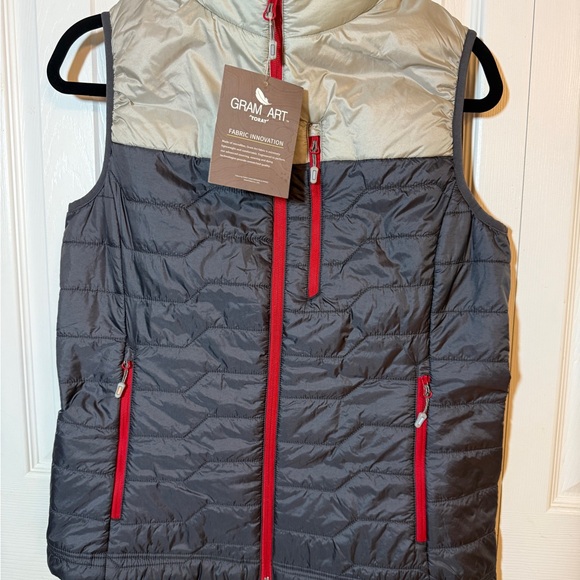 CDW Unstoppable Women's Gray and Cream Quilted Vest with Red Zipper. NWT