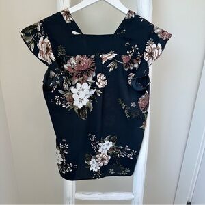 C&E Flutter Sleeve Floral Navy Blouse Size XS