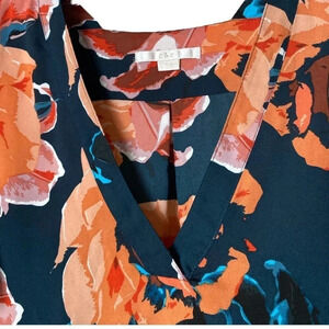 C&E | Ruffle Cap Sleeve V-Neck Floral Print Blouse Size L