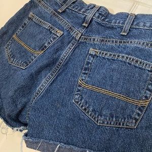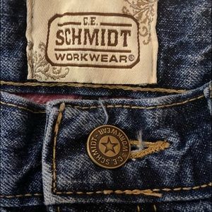 C.E. Schmidt Workwear cutoff denim shorts with paid lining detail peeking under unfinished hem. Size 8. In excellent used condition, from pet and smoke free home
