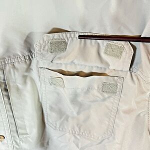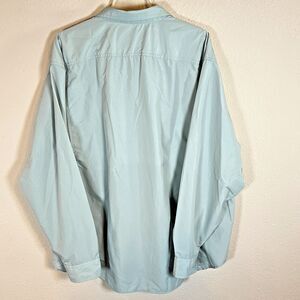 For sale is this men's CE Schmidt Workwear long sleeve button down shirt, size 3XL. Lightweight sage green polyester, with a mesh back vent. Front pockets are hook and loop fasteners, also a zipper pocket.Very good condition. No holes, tears or stains.