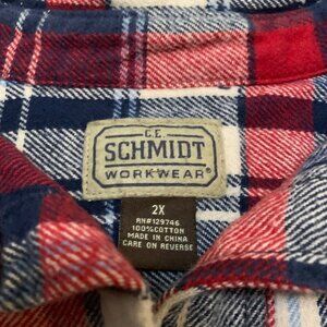 C.E. Schmidt Workwear Mens Red White & Blue Plaid Button-Up Flannel Shirt 2X