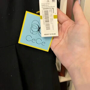 CECE Black wide leg jumpsuit with sparkles throughout. Comes with tie belt, back pockets, and hidden zipper in back.