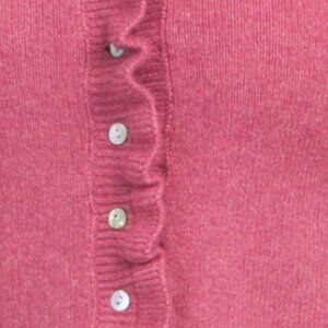 button front closure, ribbed knit, ruffled trim, brushed finish, fabric provides stretch
