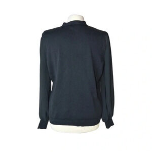 CECE || Crewneck Light Sweater Front Neck Tie Sheer Sleeve Black Size Large