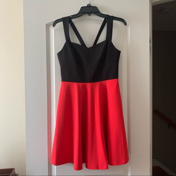 This is a lovely swing style cocktail dress. The top has lovely detailing in stitching and the straps. The skirt provides a welcome pop of color!