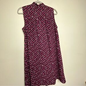 CECE Dress Womens Size 8 Tie Neck Sleeveless Geo Print Maroon Black Corpcore
