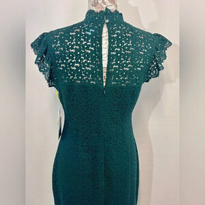 Hunter green flutter sleeve lace mini dress from CECE, size 4. Dress has round neckline and is fully lined.
