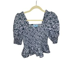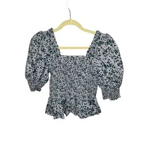 CECE Peplum Floral Print Top with Puff sleeve and stretch bodice Size M