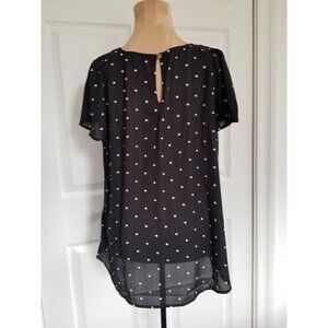 CECE Womens Black Semi-Sheer Polka Dot Cap Sleeve Keyhole Back Size (L)