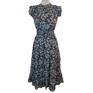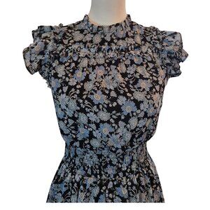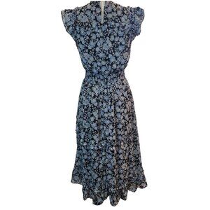 CECE Women's Flutter Sleeve Smocked Waist Midi Dress Sz: XS Black Island Oasis
