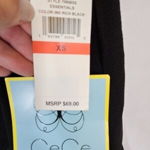 NWT Cece size XS black long-sleeved V-neck sleeve ties blouse. Pullover style. Long sleeves with ties at wrists. Bell sleeve.