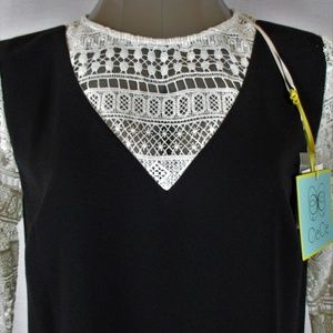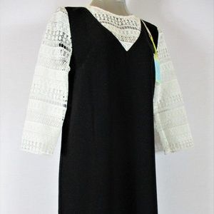 #1649E2 CECE womens Size 4 3/4 LACE SLEEVES RICH BLACK FULLY LINED DRESS NWT.