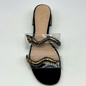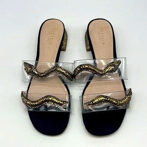 CECELIA - Danica Gold And Black Crystal Eyed Snake Slip On Sandals Size 7