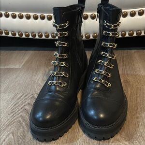 CECELIA NEW YORK Black and Gold Combat Boots with Rugged Design