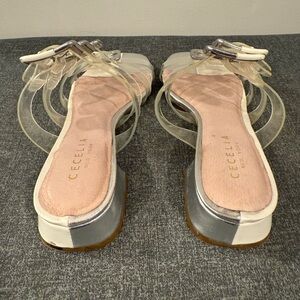 CECELIA New York women’s Lincoln Silver Slide Sandals with Clear Straps/size 6