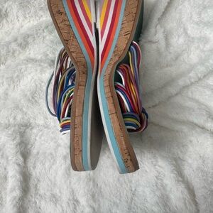 CECELIA NEW YORK Rainbow wedge Sandals ,leather upper insole, cork and EVA heel , Great condition