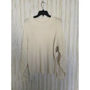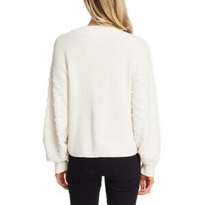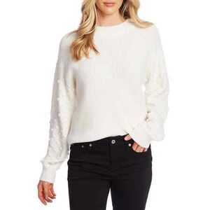 CECE XL White Puff Sleeve Bobble Ribbed Sweater