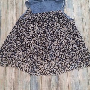 CECICO Anthropologie Knit Top Tunic Denim Blue Leopard Print Sleeveless Womens Small