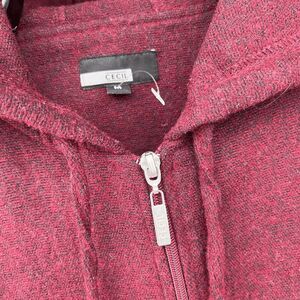 CECIL Hooded Fringe Jacket w/ Southwestern Design - Burgundy, Size M