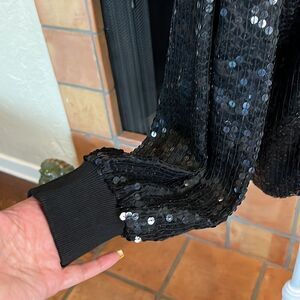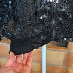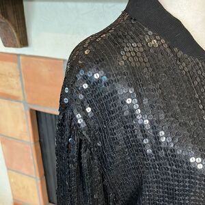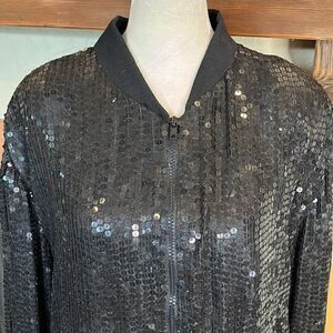 CEE CEE Black Silk/Sequin Zip-Up Balloon Sleeve Bomber, S!