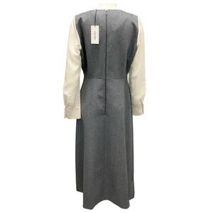 Cefinn Grey / Cream Contrast Sleeve Wool Midi Dress