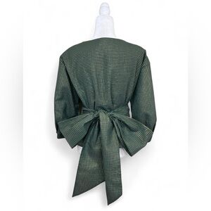 CEFINN Striped Metallic Green sparkly Voile Wrap Top! I tied it two different ways one in the front and one in the back! This would be such a perfect top for Christmas sparkly and festive!