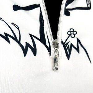Designed with a fun, unique stick figure golf print, this CEGOLFS lightweight pullover top is comfortable and stylish for both casual and golf wear. Black & white print, zipper still has plastic on it! Small slits on sides for ease of movement.