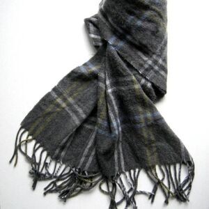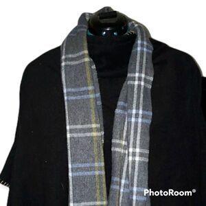 CEJON Gray Plaid Classic Scarf/Wrap Fringe on Both Ends Made in Italy