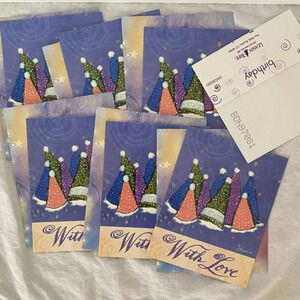 CELEBRATE 6/pack Leanin' Tree Greeting Cards Party Hats Flavia Weedn New Old Stock